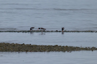 American Oystercatchers feeding out in Long Island Sound with a low rising tide